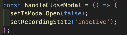 handleCloseModal 변수에서 isModalOpen 의 값을 변경해준다 해당 변수는 recoil에 저장되어 있으므로